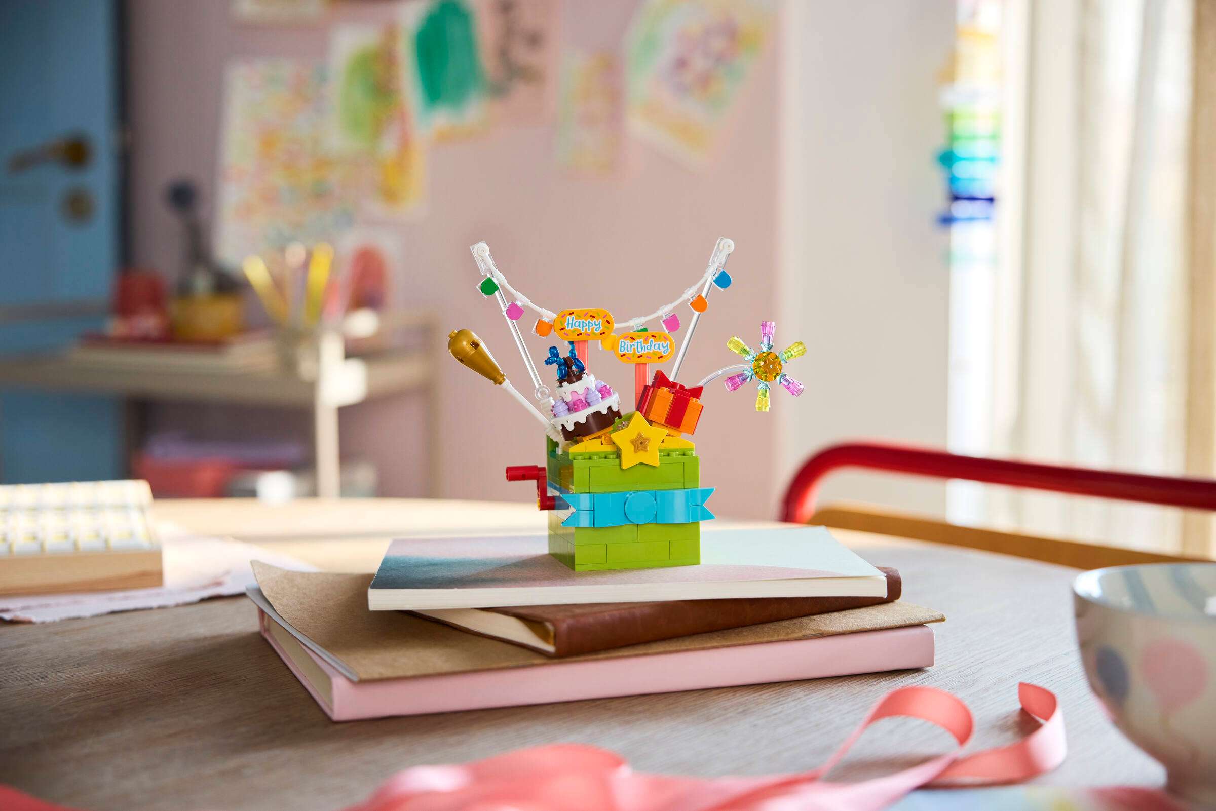 It’s time to celebrate birthdays the LEGO® way. Delight kids on their special day with the LEGO Gift Box Celebration (40871) building set for boys and girls ages 7 and up. This exciting set lets kids create a colorful LEGO present that’s packed with cool details. While building the model, discover lots of fun accessories, including a cake, balloon animal, ice cream, garlands, balloons, fireworks and more. For added fun, there are “happy birthday” stickers that kids can place on a banner that moves up and down – ideal for when everyone sings “happy birthday”. The set makes a great birthday gift for boys, girls and LEGO fans and becomes a vibrant piece of birthday decor once it’s built. Display it as a table centerpiece, use it as a birthday photo prop and create a family tradition by bringing it out every year. Set contains 224 pieces.