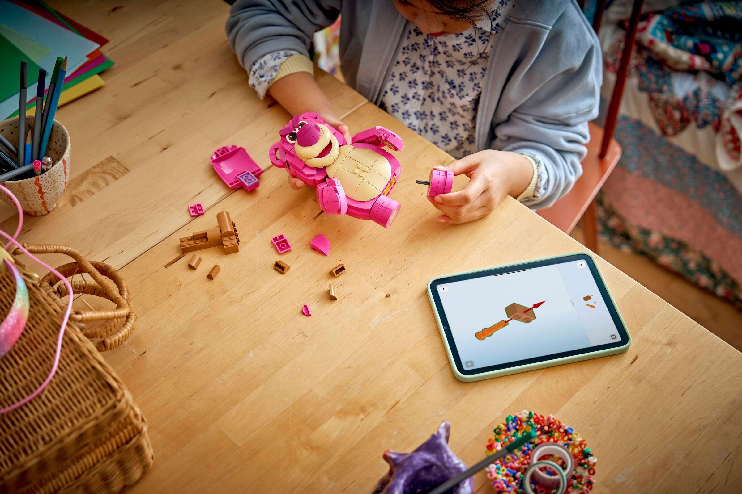 Exciting stories are waiting for movie fans with this LEGO® ǀ Disney and Pixar Toy Story Lotso (43306) model building kit. This buildable set for kids, inspired by the Toy Story universe, is fun for girls and boys ages 9 years old and up, encouraging creative play or cool display. It includes a brick-built pink-and-white Lotso the bear character with a movable face, arms, legs and hands, and a walking stick. Lotso can stand or sit and has hidden Easter eggs to discover. This Lotso gift-giving idea is a great choice for girls, boys and any Toy Story fan. The Disney building toy can expand a current collection or start one with a well-known character. And as kids build, they can collect all their sets in one place: the LEGO Builder app lets kids save their sets, zoom, rotate in 3D and track their building progress with ease. Set contains 570 pieces.