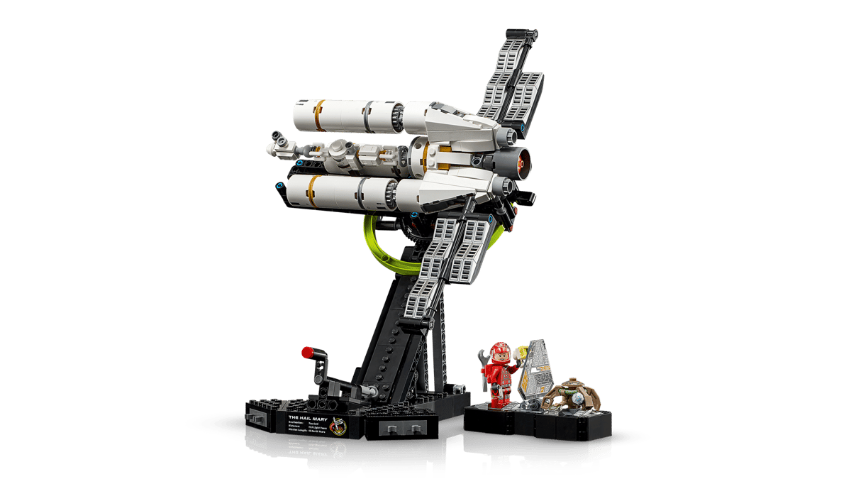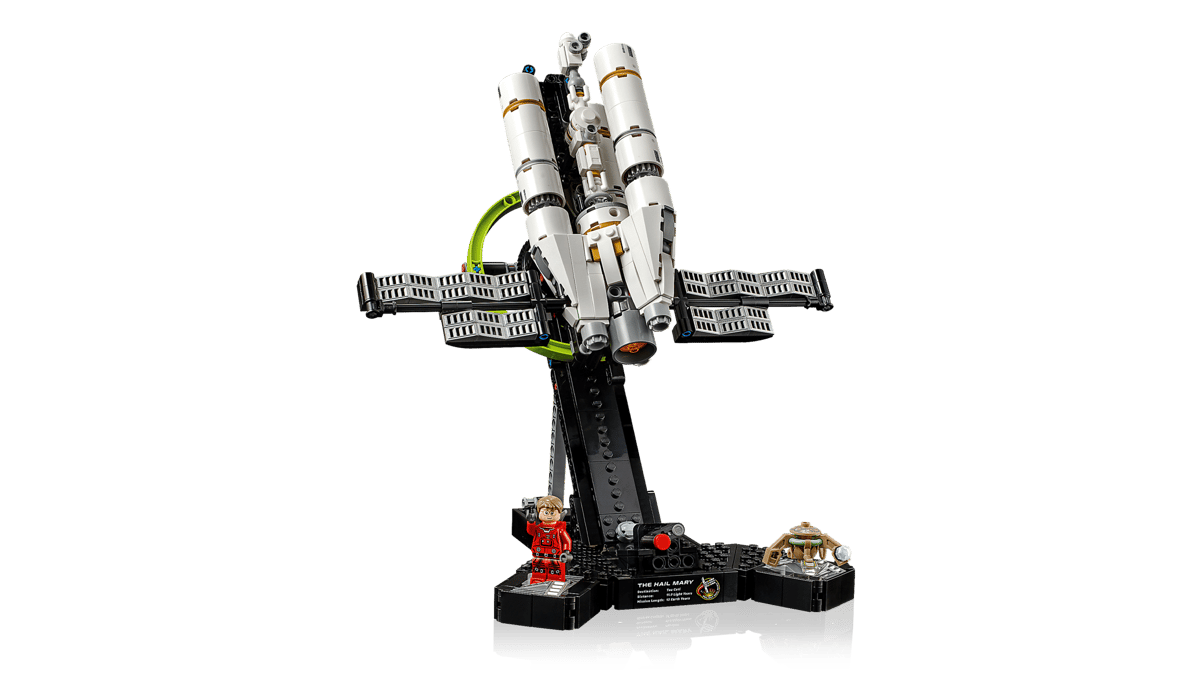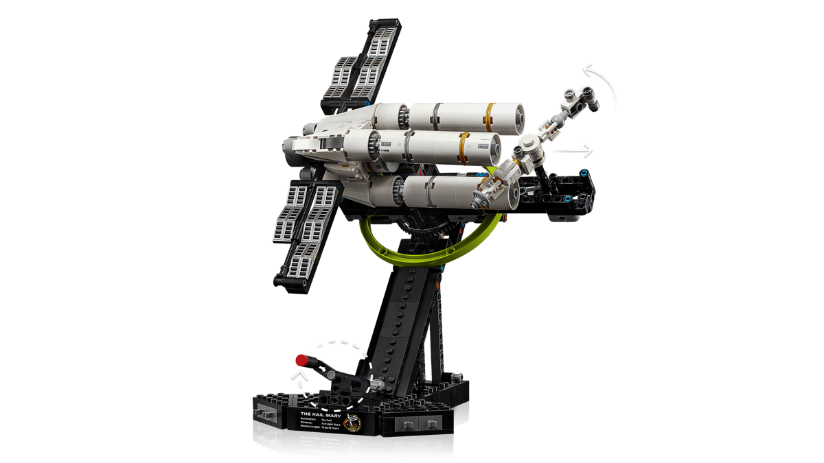 Launch into the realm of cinematic science fiction with the LEGO® Icons Project Hail Mary (11389) spaceship model kit for adults. Enjoy a creative journey as you craft each detail of this microscale replica that captures the design of the iconic interstellar spacecraft. Turn the crank to send the crew module into orbit, simulating the centrifugal gravity system from the movie. Then add the Ryland Grace minifigure and Rocky figure to complete your display. This detailed model makes a striking centerpiece for the home or office and a perfect birthday or holiday gift for sci-fi lovers. Build smarter with the LEGO Builder app – zoom, rotate in 3D, track progress and follow step-by-step digital instructions. Set contains 830 pieces.