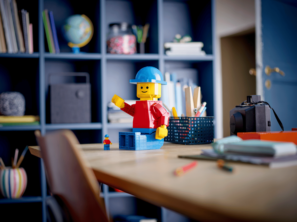 Enchant any LEGO® enthusiast aged 10 and up with this buildable Up-Scaled LEGO Minifigure (40649). This posable minifigure looks just like the one found in front of the LEGO Campus in Billund and has a movable head, arms, legs and hands. It also features an opening hat that hides a standard-size minifigure inside to inspire role-play fun. This up-scaled buildable figure will look great in any home or office and makes a meaningful gift for any fan of LEGO building or minifigures.