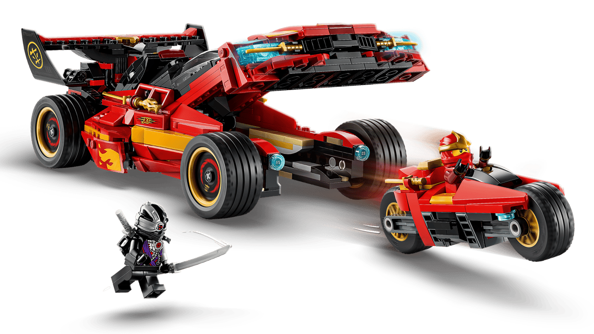 Celebrate the 15th anniversary of the LEGO® NINJAGO® TV show with this incredible 2-in-1 X-1 Ninja Charger (71867), a remake of the original X-1 Ninja Charger (70727). This toy vehicle offers fans ages 14 and up endless dynamic play and display options. This building set for teen boys and girls comes with 3 NINJAGO minifigures: Kai, the villainous General Cryptor and, for the first time, the Elemental Master of Shadow on a stand with a celebration coin. Each character comes with a sword accessory, while Kai has 2 that can be attached to the car and motorcycle. Teens can recreate action-packed scenes from the TV show before placing the model on display in their room. Discover more fun gift ideas for ninja fans in the LEGO NINJAGO range, which includes mechs, dragons and temples. And kids can build with confidence using the LEGO Builder app – zoom, rotate in 3D and track progress with easy-to-follow digital instructions. Set contains 691 pieces.