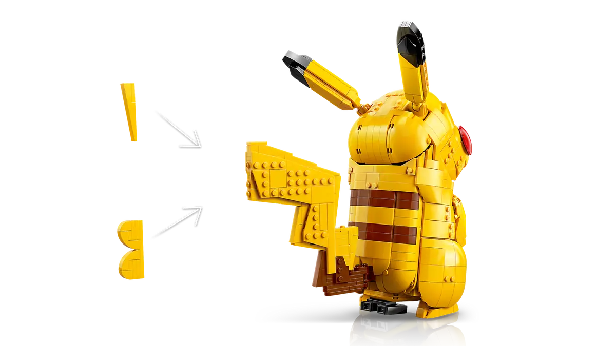 Relive Trainer memories with the Pikachu and Poké Ball (72152) building kit. Construct this piece of gaming room decor and capture that feeling when you first went into battle with this cute Pokémon by your side. A gift for adults who love cute gaming accessories and video game merch, this 2050-piece LEGO® set is packed with Pokémon details. A colorful piece of gaming room decor, this yellow Pikachu model, with its black ear tips and red cheeks, has a tail that can be built to show it in male or female version. Other iconic details include lightning sparks symbolizing the energy stores of this Electric-type Pokémon and the “25” incorporated on the display base as a nod to Pikachu’s Pokédex number. The posable figure can be displayed in adynamic battle stance launching from the opened Poké Ball, which can also be displayed closed when the Pikachu figure is in resting pose. Enjoy enhanced building with the LEGO Builder app, zooming and rotating your build, while saving and tracking progress.