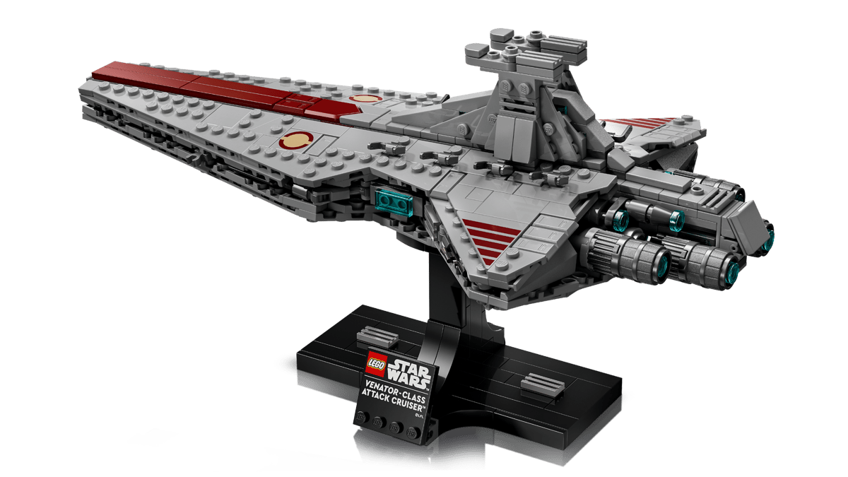 Showcase the streamlined design of a Venator-Class Attack Cruiser with this starship model building set (75441). Use LEGO® bricks to recreate the distinctive silhouette and authentic details of one of the most versatile starships in the Galactic Republic’s fleet. Relive Star Wars: Revenge of the Sith™ scenes as you immerse yourself in this complex and rewarding build. Proudly display your impressive Attack Cruiser on the buildable stand with a nameplate.