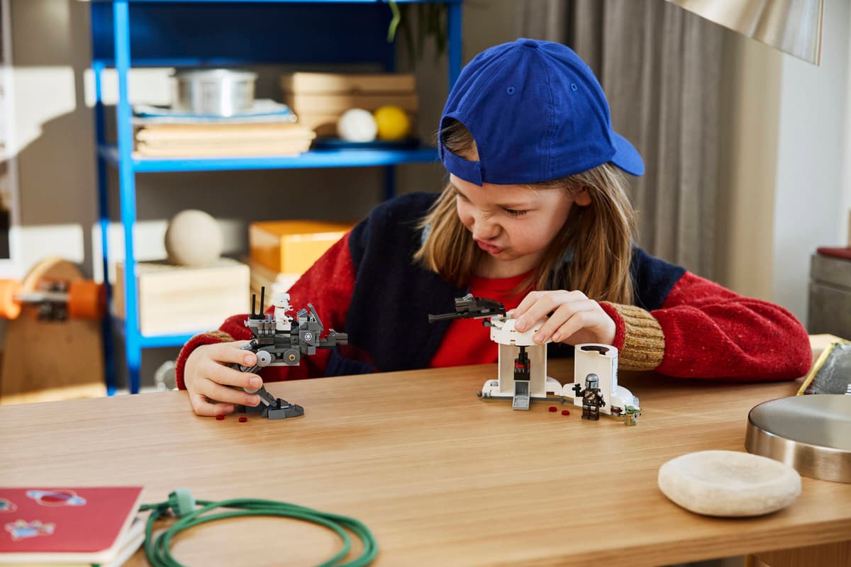 Let kids create their own Star Wars: The Mandalorian and Grogu™ adventures with this AT-RT Attack (75444) toy building set. It features a posable AT-RT walker with a dual stud shooter, and a defensive tower with a rotating turret and its own dual stud shooter. Place the Imperial Remnant AT-RT Driver or The Mandalorian LEGO® minifigure in the AT-RT seat (remove a dashboard brick to make room for the Grogu LEGO figure to ride along with Mando). Open the defense tower to reveal a weapon rack and storage space. Equip The Mandalorian with the jetpack and blaster pistol and the AT-RT Driver with a blaster for extra fantasy battle action. An exciting fantasy-adventure gift for boys, girls and any Star Wars: The Mandalorian and Grogu fans ages 7years old and up, this building toy is a great way to inspire kids’ imaginations. Kids can build with confidence using the LEGO Builder app – zoom, rotate in 3D and track progress with easy-to-follow digital instructions. Set contains 297 pieces.