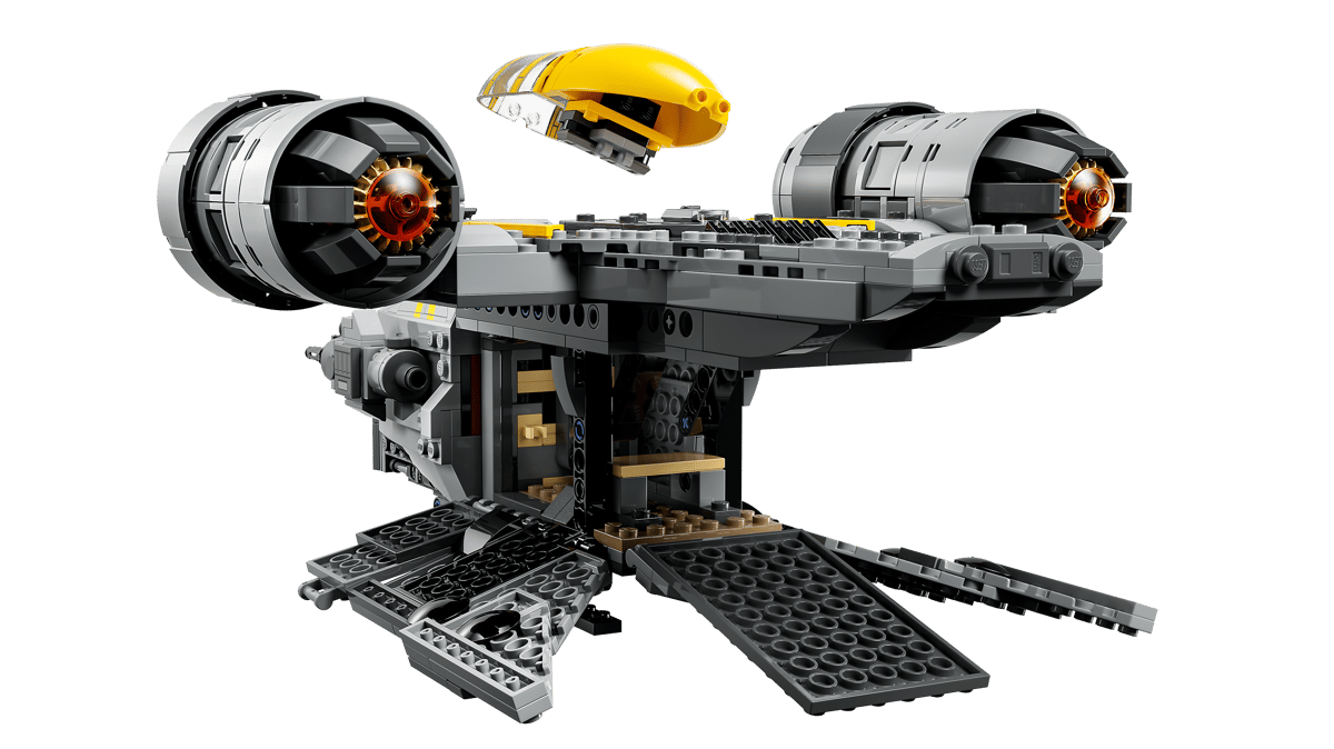 Launch into action-packed battles with the LEGO® Star Wars™ The Razor Crest™ (75447) building toy for kids. Recreate the iconic starship in the same design and striking color scheme as seen in Star Wars: The Mandalorian and Grogu™. This Star Wars vehicle is easily accessible for play with The Mandalorian, Colonel Ward, Zeb Orrelios and Imperial Remnant Stormtrooper LEGO minifigures and Grogu LEGO figure. Lift off the cockpit canopy, open the side panels to access the engine and cargo compartment and fold down the landing ramps. A top gift for boys, girls and any Star Wars: The Mandalorian and Grogu fans ages 10 and up, this building set also includes the Stormtrooper’s Sentry E-Web blaster, The Mandalorian’s jetpack and other accessoriesto inspire creative play. Kids can build with confidence using the LEGO Builder app – zoom, rotate in 3D and track progress with easy-to-follow digital instructions. Set contains 930 pieces.