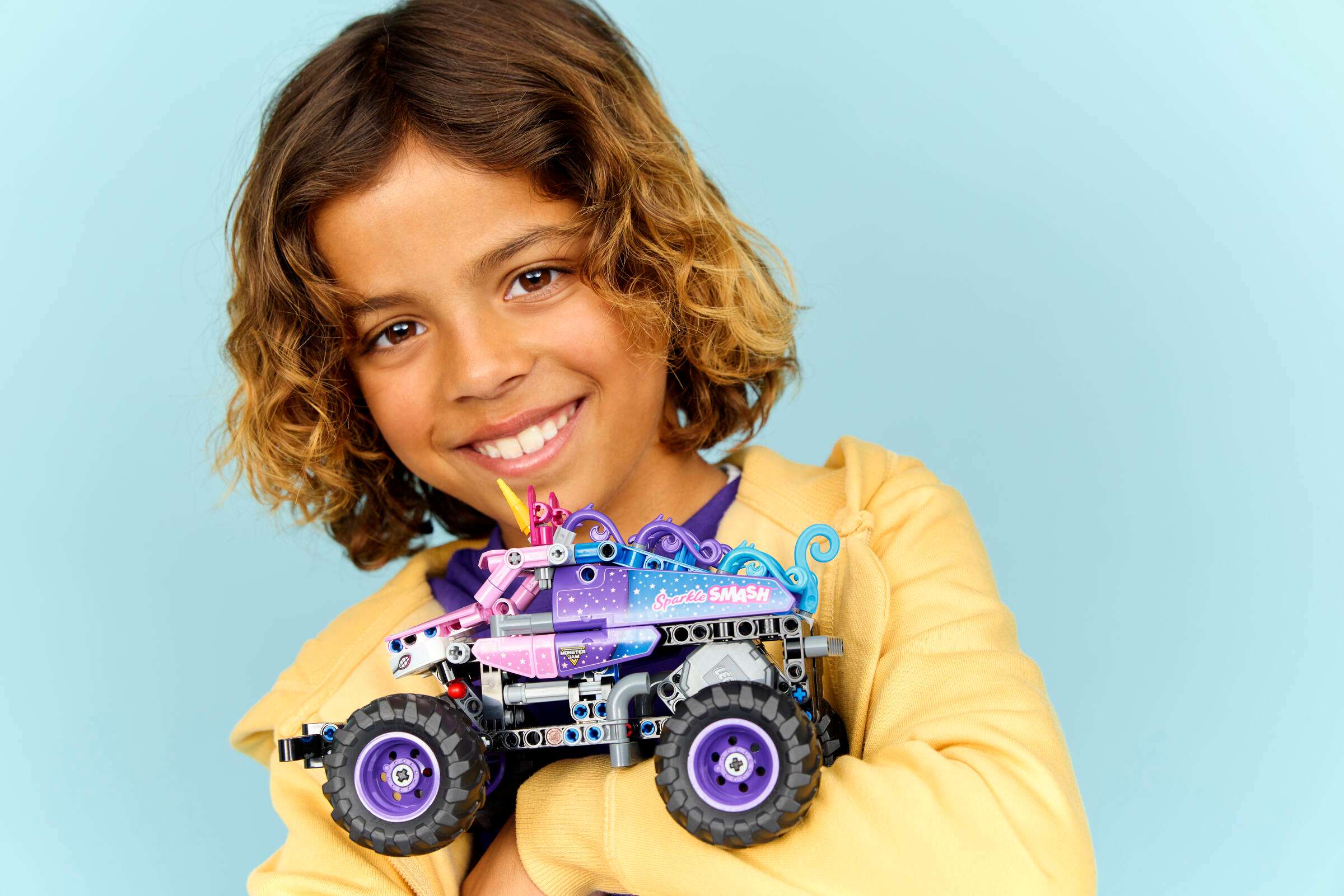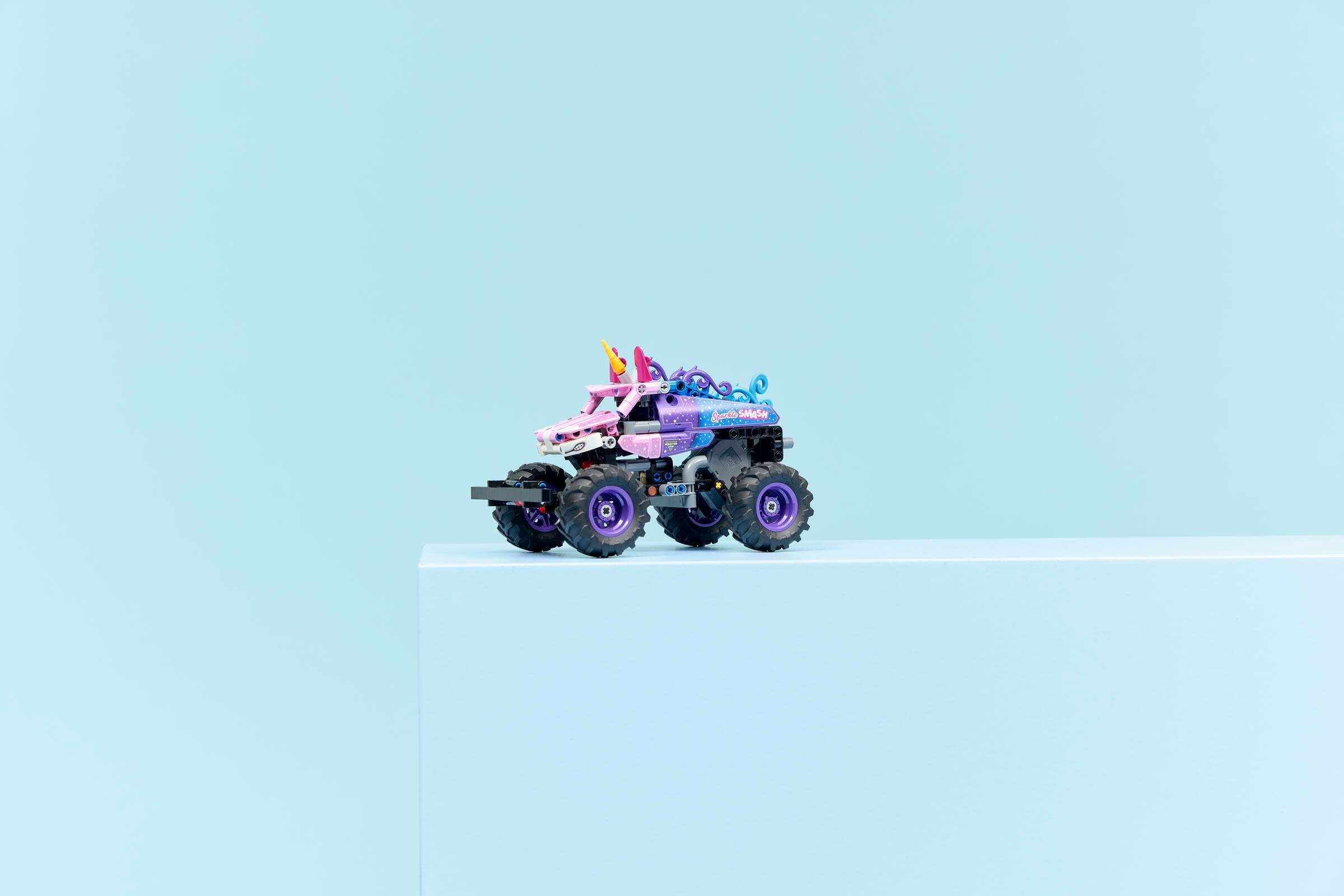 Recreate the exciting action of Monster Jam™ with this kids’ pull-back truck toy for boys and girls ages 7 years and up. Use the cool pull-back function to send the Sparkle Smash™ truck (42220) speeding along, then recreate the awesome stunts performed by iconic monster trucks. This detailed unicorn monster truck toy comes with authentic design details like the sparkling stars and iconic unicorn horn inspired by the real Sparkle Smash truck. This building toy monster truck gift idea for boys, girls and kids is a fun option for anyone who loves LEGO® vehicles, unicorn toys, pull-back cars and the excitement of Monster Jam’s jaw-dropping events. LEGO Technic™ sets feature realistic movements and mechanisms that introduce young LEGO builders to the universe of engineering in an approachable and realistic way. Kids can build with confidence using the LEGO Builder app, which lets them zoom, rotate in 3D and track progress with easy-to-follow digital instructions. Set contains 243 pieces.